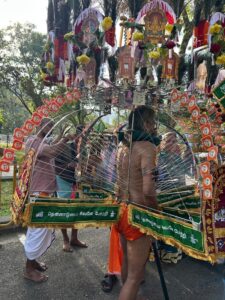 どの瞬間にも起こる出来事の 1つ1つ 全てが学びで、愛おしくて、一歩一歩すべての歩みが祝福でした。お天気も良くお祭りにふさわしい南国らしい青空の下。すごいなぁ、すごいなぁ。ムルガン神の力ってすごいなぁ。終始ムルガン神のパワフルさを感じた貴重な体験となりました。